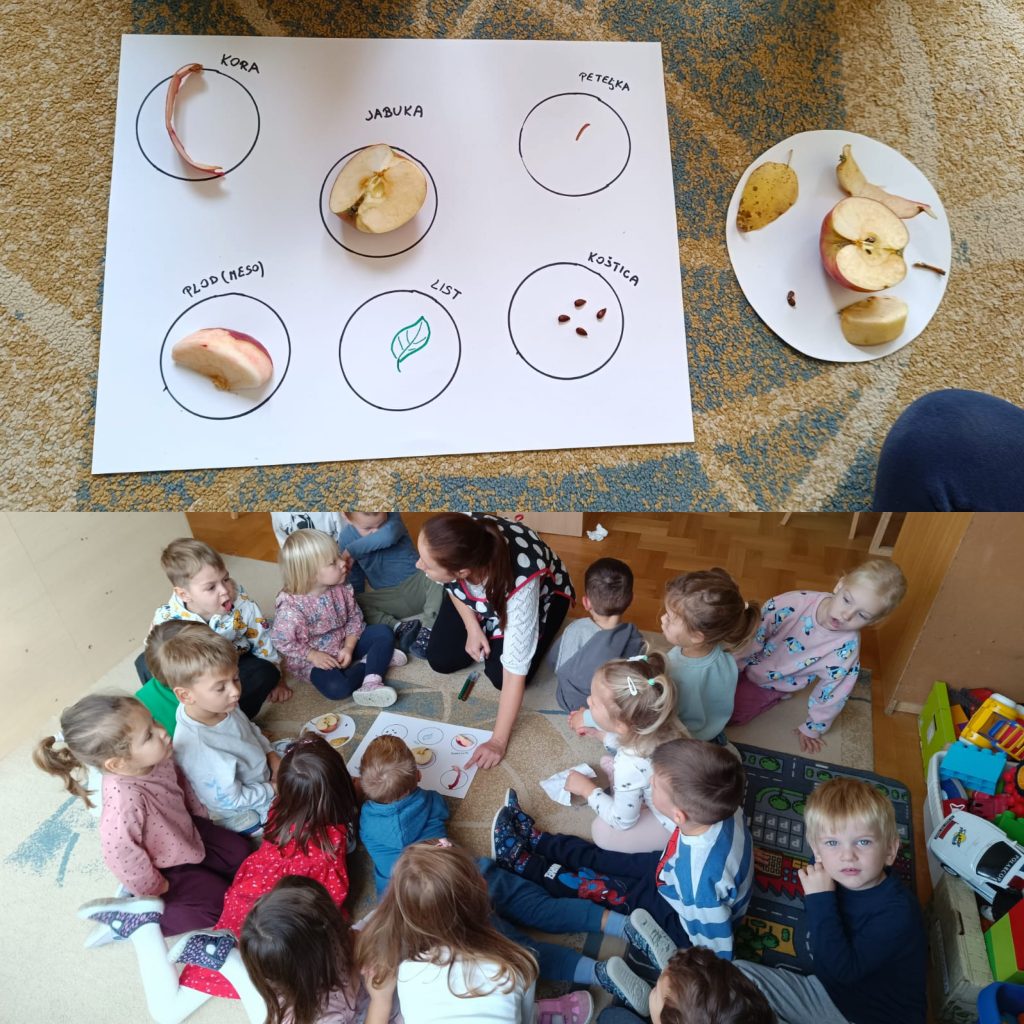 Skupina Pužići obilježila je 20.10. Dan jabuka. Odgojiteljica je s djecom razgovarala o jabukama, njenim bojama, obliku i okusu te su istraživali dijelove jabuke – koru, meso, koštice, list i peteljku.