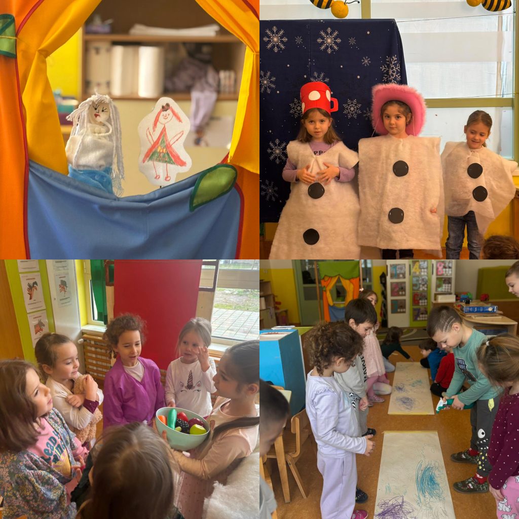 U projektu „Mašta može svašta“ djeca iz odgojne skupine Pčelice svakodnevno istražuju svijet kroz igru, priču, pokret i stvaranje. Cilj projekta je potaknuti djecu da slobodno izražavaju svoje ideje, osjećaje i doživljaje te da kroz kreativne aktivnosti razvijaju samopouzdanje i socijalne vještine. Za djecu mašta nije bijeg od stvarnosti nego alat za razumijevanje svijeta, odnosa i vlastitih emocija. Kroz procesnu dramu i scenske igre djeca razvijaju govor i izražavanje, uče prepoznati i razumjeti emocije, vježbaju suradnju i međusobno uvažavanje te razvijaju kreativno i samostalno razmišljanje. U dramskim igrama svako dijete može istraživati različite uloge i učiti kroz iskustvo. Likovni dio projekta usmjeren je na istraživanje različitih likovnih tehnika kroz upoznavanje radova poznatih svjetskih umjetnika poput Kandinskog i Mondriana. Djeca promatraju boje, poteze, oblike i stilove, a zatim kroz vlastiti rad istražuju slikanje različitim alatima i materijalima, kombiniranje boja i tekstura, izražavanje raspoloženja kroz likovni rad te stvaranje vlastitih originalnih umjetničkih rješenja. Cilj nije kopirati umjetnike nego inspirirati djecu da pronađu svoj način izražavanja. Kroz projekt djeca razvijaju vještine koje su važne za cijeli život: izražavanje mišljenja, slušanje drugih, rješavanje problema i samostalno donošenje odluka.