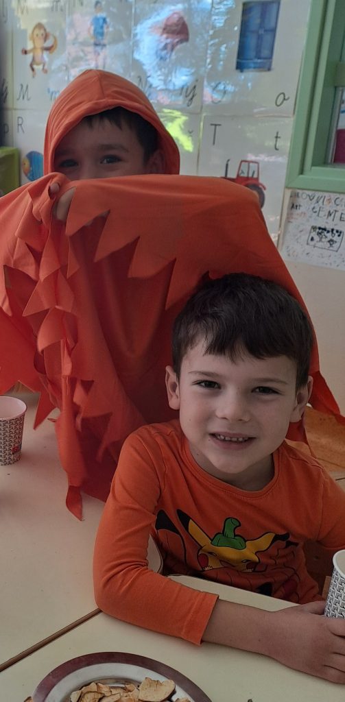 Ove godine engleska skupina Smajlići obilježila je Halloween kao veseli Pumpkin Day. Djeca su u vrtić došla odjevena u žutu i narančastu odjeću, boje koje simboliziraju bundevu i stvaraju toplu, jesensku atmosferu.